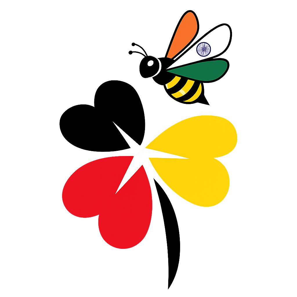 Like bees drawn to a flower, our identity represents Indians discovering opportunities in Germany while contributing to a shared ecosystem through collaboration, culture, and growth.